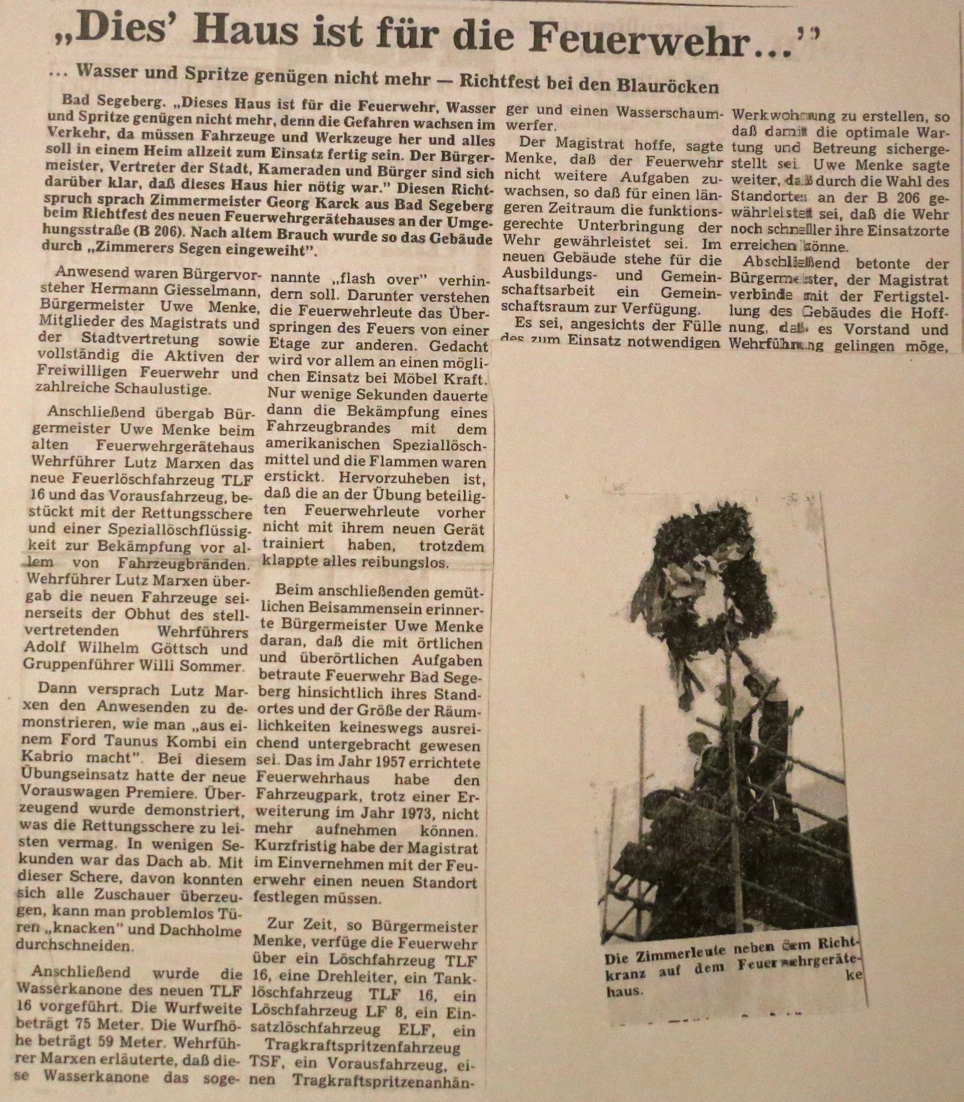Hier finden Sie die Berichterstattung zum Feuerwehrhaus aus unterschiedlichen Zeitungen in chronologischer Reihenfolge.